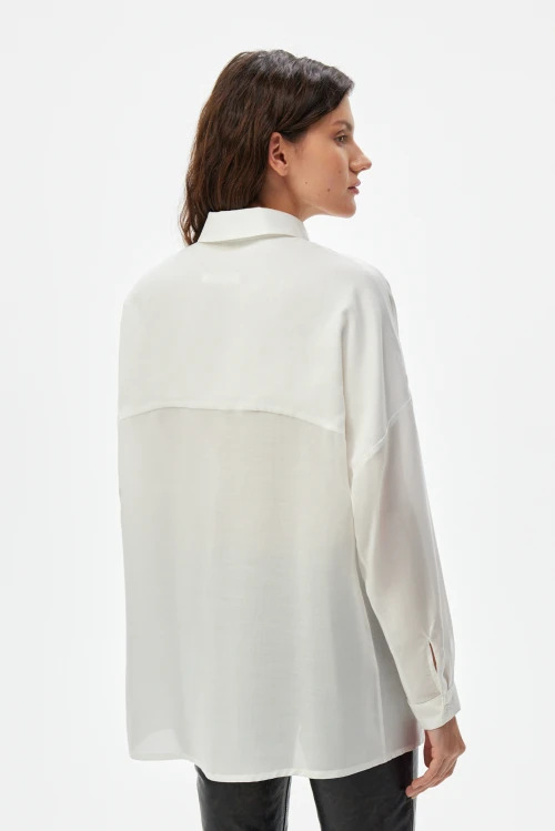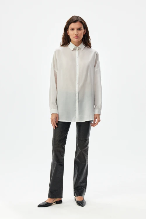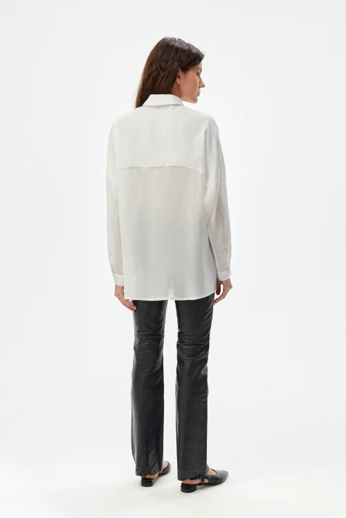 Свободная белая блуза из эвкалиптового батиста воплощает сдержанную элегантность и функциональность. Минималистичный фасон и чистый белый тон формируют аккуратный, свежий образ, который легко трансформируется от строгого офисного стиля к расслабленному спортивному шику. Размер 40-44, рост 176 см.