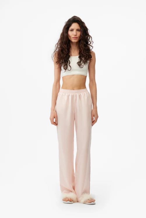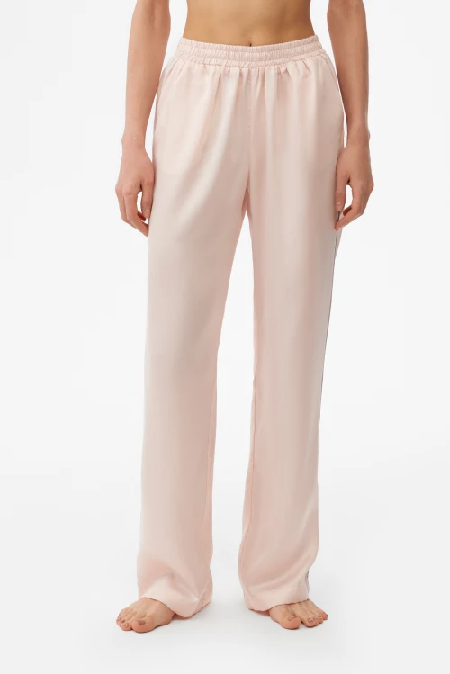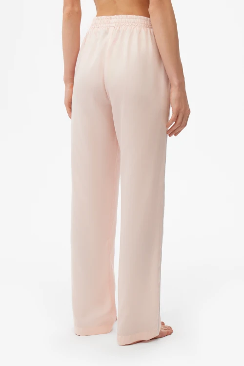Универсальность этой модели особенно ценна дома и в отпуске: лёгкая, воздухопроницаемая ткань дарит ощущение уюта и свободу движений, а антистатические и гигиенические качества делают их отличным выбором для длительного ношения. Персиково-розовый оттенок придаёт образу нежность, оставаясь при этом сдержанным и элегантным.