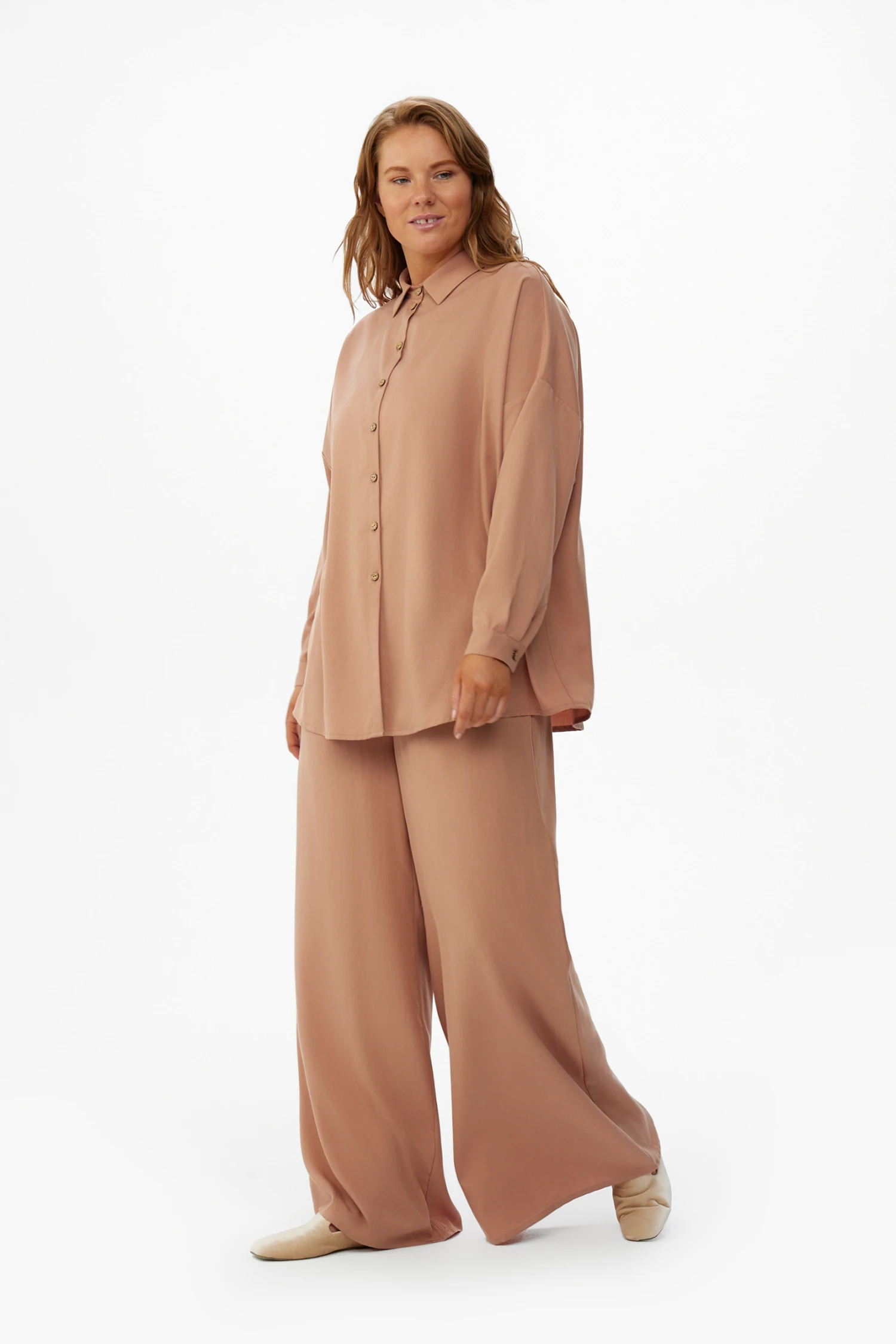 Модель гармонично вписывается в разные ситуации: офис в стиле smart-casual, прогулки по городу, деловые поездки, отпуск или уютные вечера дома. Отлично комбинируется с оверсайз-рубашкой из линейки Twill, тонким джемпером или структурированным жакетом — в зависимости от желаемого образа.