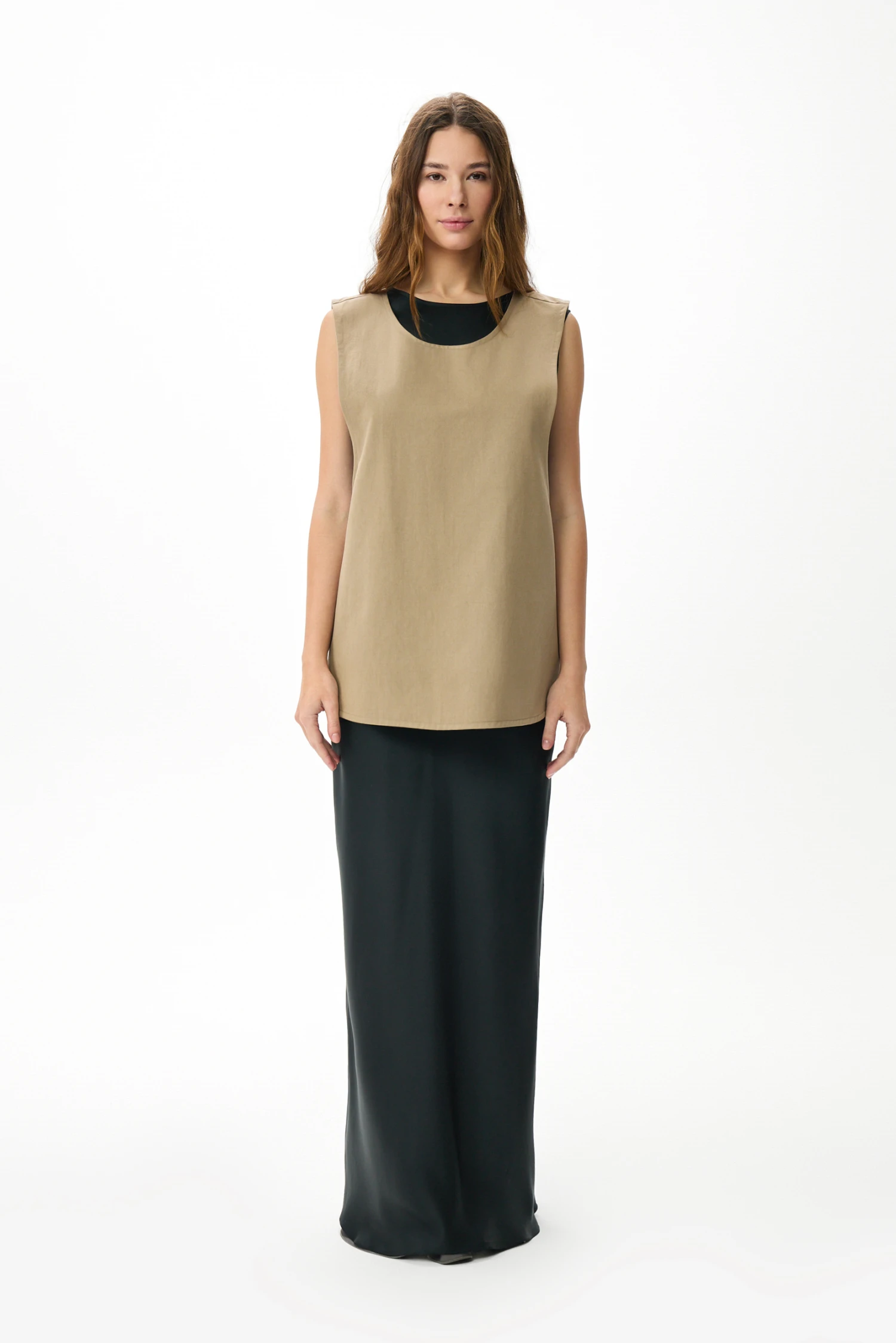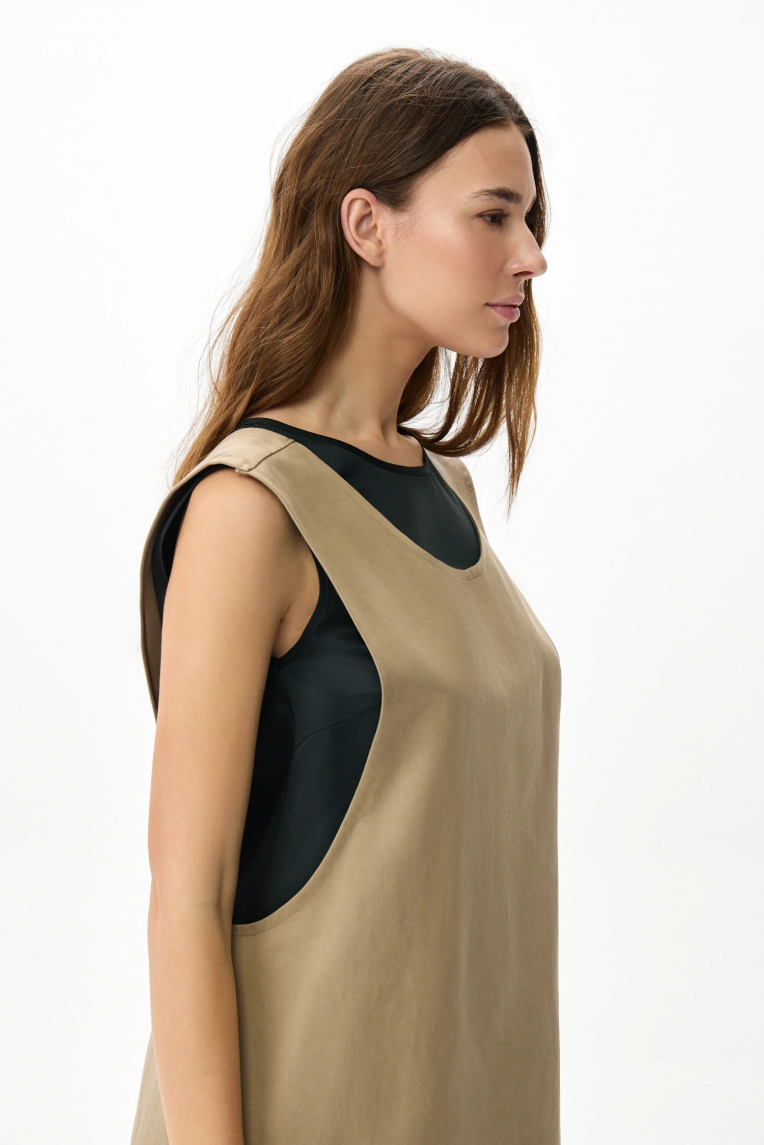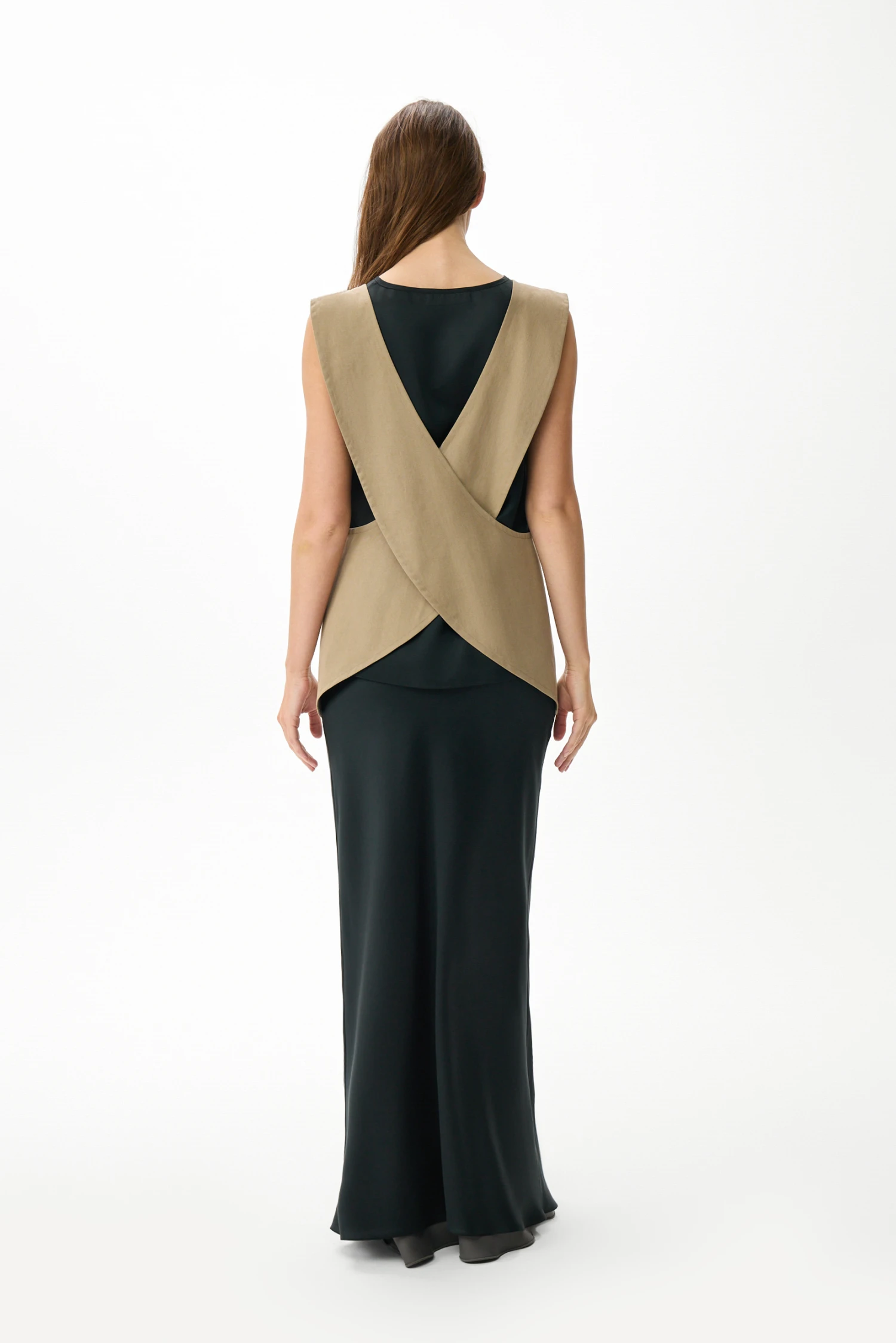 Уход минимален: изделие сохраняет форму и оттенок при машинной стирке в щадящем режиме и не требует специальных приёмов. Оливково‑серый фартук‑жилет — функциональное и эстетичное решение для взрослой уверенной женщины, ценящей порядок, комфорт и продуманную практичность в повседневной жизни.