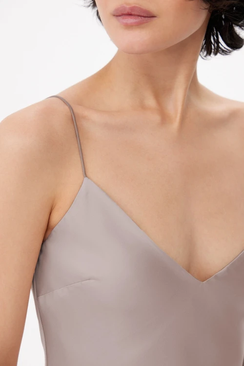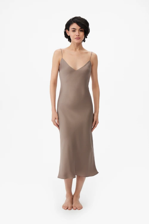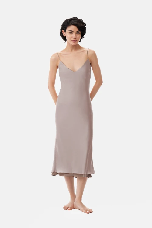 Плотная, непрозрачная ткань обеспечивает приватность и уверенность при движении, сохраняя при этом струящийся силуэт благодаря крою по косой. Двухслойная конструкция повышает износостойкость и формирует аккуратный объём без утяжеления. Материал приятен на коже, гигиеничен и комфортен для сна, отдыха или спокойных вечеров дома и в отеле.