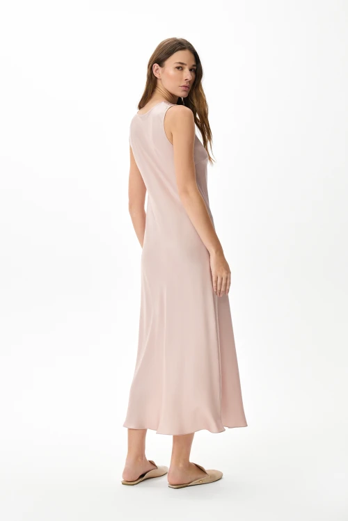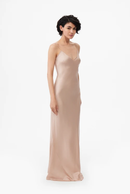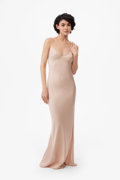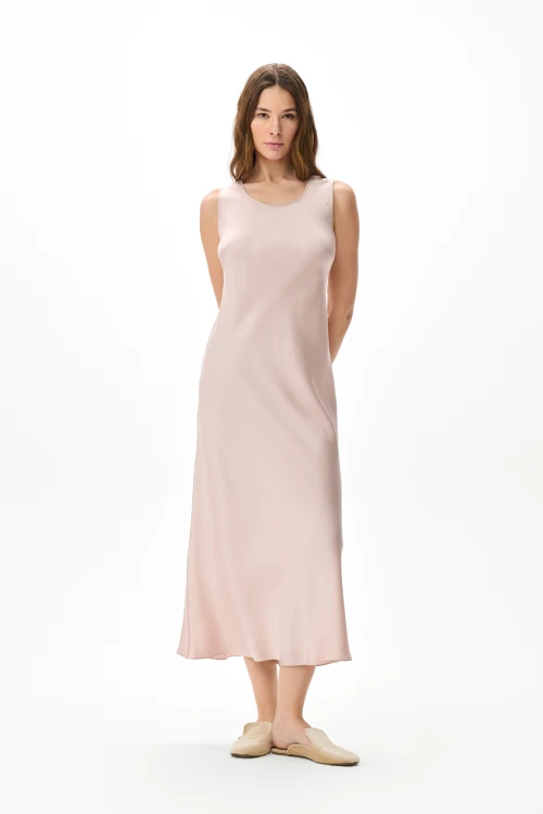 Изысканный пеньюар в пол в благородном пудровом оттенке — отличный выбор для тех, кто предпочитает сдержанную роскошь и удобство в повседневности. Длина до пола придаёт образу плавную аристократичность, а мягкий нюд подчёркивает утончённость любого наряда. Размер 50-52, рост 176 см.