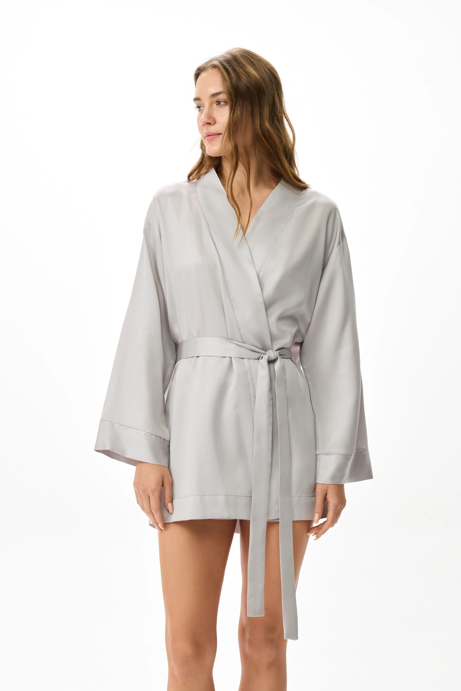 Пояс предусматривает несколько способов ношения: классическое завязывание на талии для аккуратного силуэта, широкий оби для утончённой японской эстетики или свободная драпировка в форме лёгкой накидки. Такая универсальность позволяет адаптировать образ под домашний отдых, сон, спа-процедуры, отпуск или непринуждённую деловую встречу.
