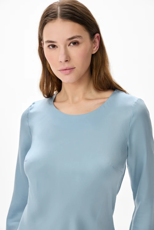 Платье универсально по назначению: подойдёт для спокойной городской прогулки, делового обеда, лёгкого вечернего выхода или отпускного гардероба. Спокойный голубой тон легко сочетать с лаконичными аксессуарами — от минималистичных украшений до уютного кардигана для прохладного вечера.