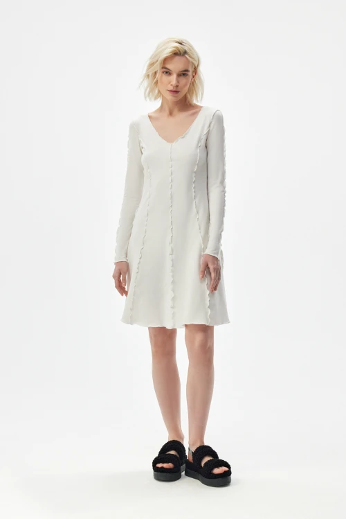 Уход простой и экономичный: деликатная стирка при низкой температуре, сушка в расправленном виде и щадящая глажка при необходимости. Такое платье станет универсальной и долговечной покупкой, подходящей как для спокойных домашних вечеров, так и для насыщенных городских дней.