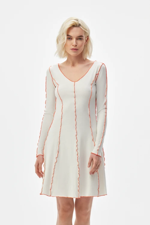 Трикотаж отлично удерживает форму и не склонен к образованию катышков, что делает изделие практичным для регулярного ношения. Гигиенические и вентилирующие свойства волокон обеспечивают комфорт в течение дня: прогулки по городу, рабочие будни в офисе, поездки или отдых на курорте — платье сохраняет аккуратный вид. Небольшая эластичность обеспечивает удобство при активном течении дня и лёгких прогулках.