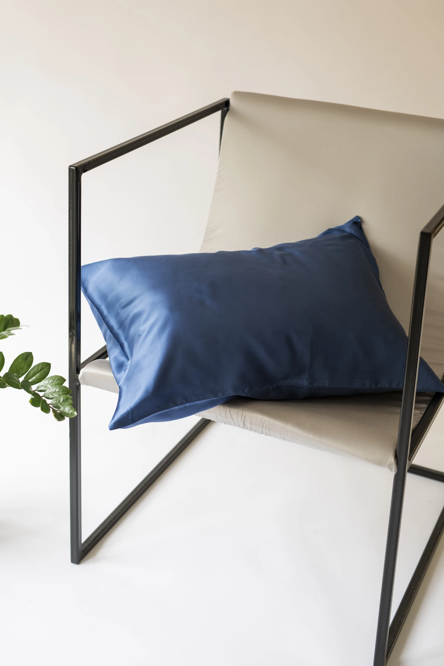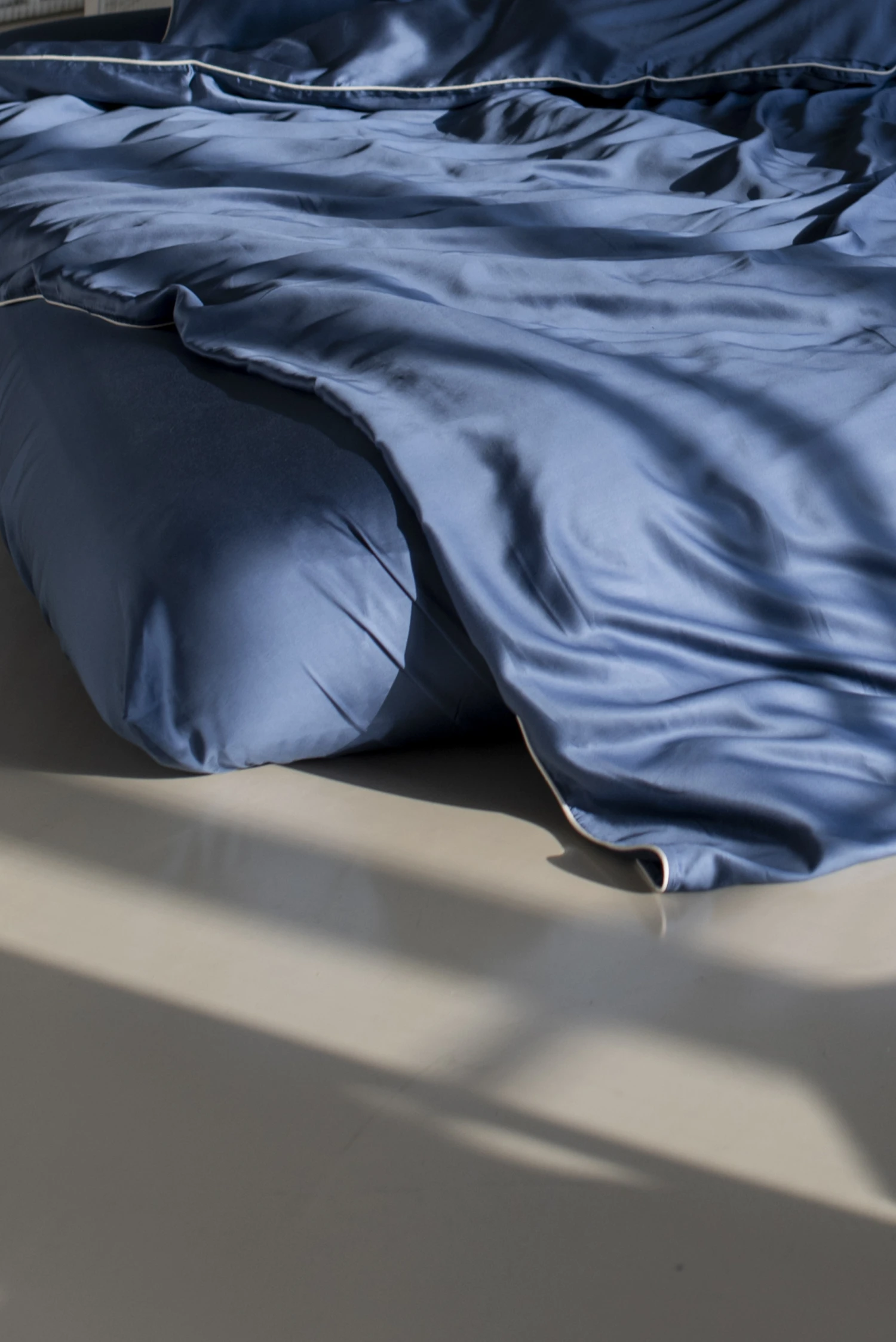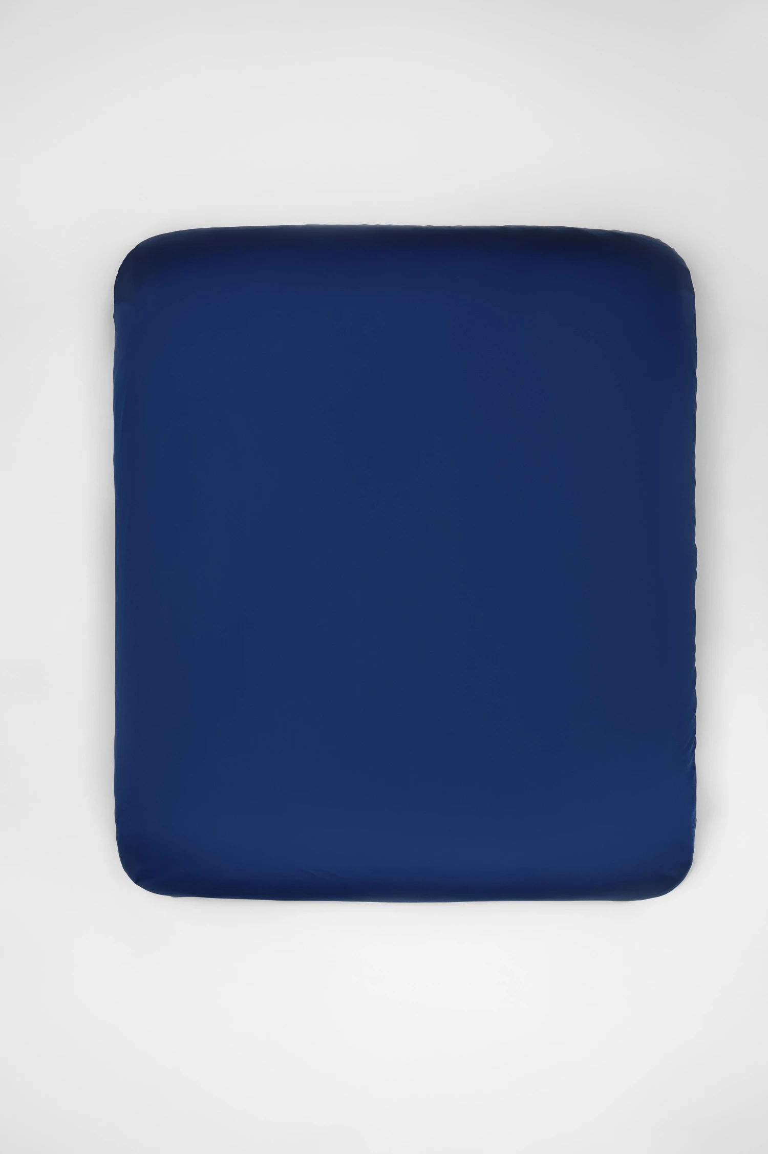 Тенселевая простыня насыщенного синего цвета на резинке объединяет тактильную мягкость и удобство в эксплуатации. Гладкая, почти воздушная поверхность придаёт деликатную нежность, а натуральные свойства волокон активно отводят влагу и поддерживают комфортный микроклимат во время сна. Материал не электризуется и прочно лежит на матрасе, поэтому поправлять её по ночам почти не придётся. Размер: 120x200x30 см.