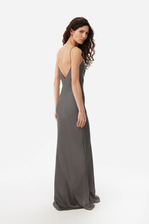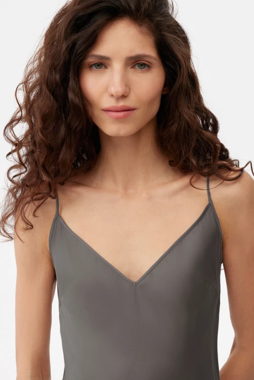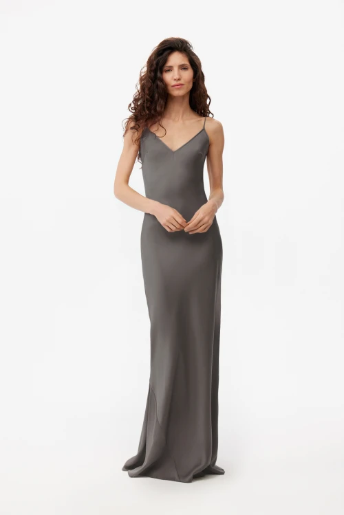 Удлинённая, одновременно строгая и изящная сорочка в насыщенном графитовом цвете создана для тех, кто предпочитает сдержанный, но утончённый минимализм. Тонкие лямки теперь регулируются: обновлённая обработка верха даёт возможность подстроить длину и глубину проймы под индивидуальные особенности груди, обеспечивая безупречную посадку и комфорт. Открытая спина привносит лёгкую смелость, сохраняя общее аристократическое звучание изделия. Размер 42, рост 176.