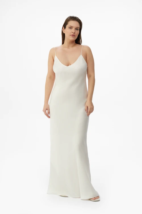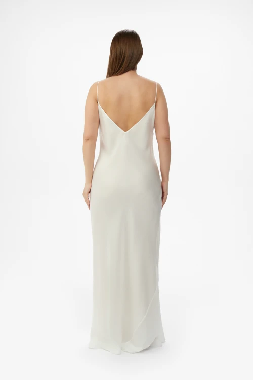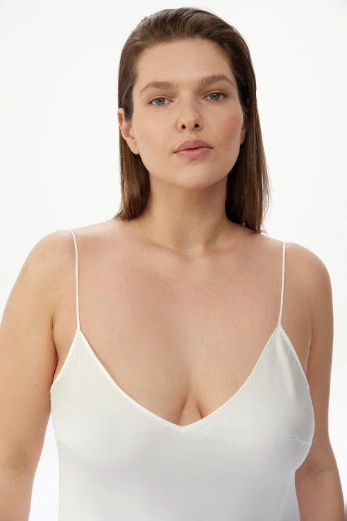 Косой покрой деликатно подчеркивает фигуру, даря ткани текучесть и мягкие силуетные линии без ограничения свободы движений. Открытая спина добавляет лёгкой дерзости и визуальной воздушности, благодаря чему сорочка уместна как для спокойных вечеров, так и для камерных выходов.