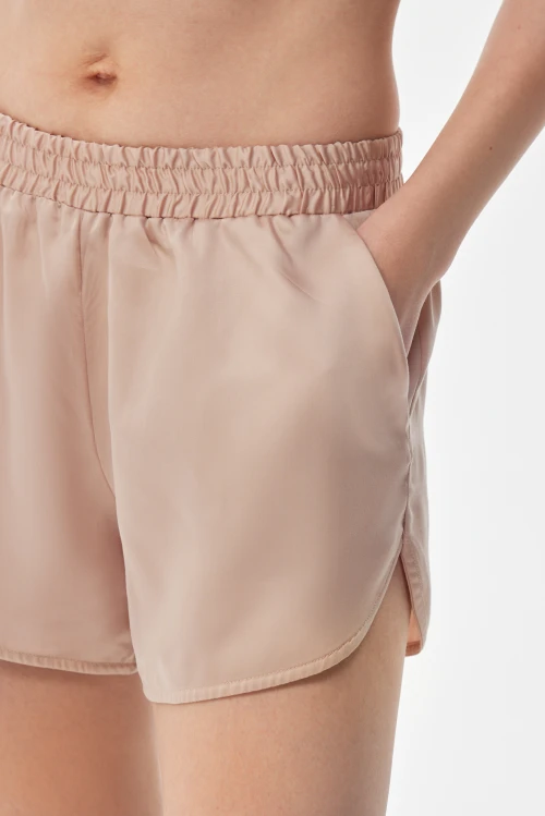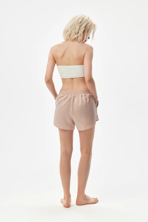 Изящные нюдовые мини-шорты в пудовом тоне, сшитые из шелковистого натурального тенселя — гармония удобства и сдержанной красоты. Умеренно свободный силуэт дарит ощущение уюта и свободу движений, при этом выглядит аккуратно и современно-элегантно. По тактильным качествам материал близок к сочетанию шёлка и хлопка: гладкий с лёгкой бархатистостью, не скользит и приятно прилегает к коже. Модель представлена в размере 44 и рассчитана на рост 170–176 см.