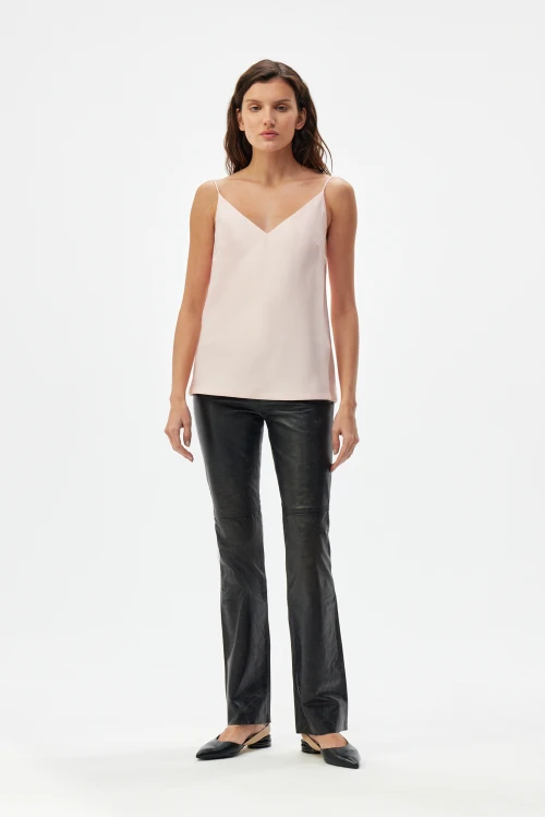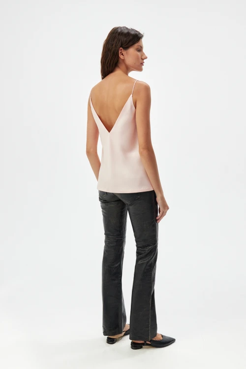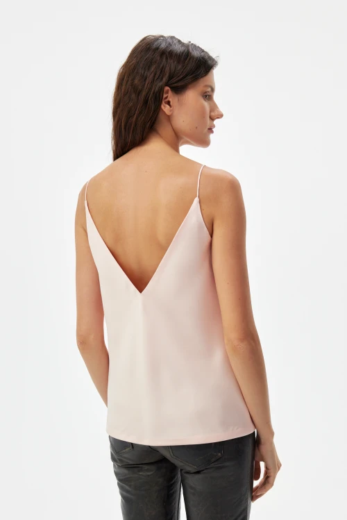 Универсальный крой позволяет использовать модель в разных ситуациях: дома для отдыха и сна, в городе в сочетании с джинсами или юбкой, на работе как базовую вещь под жакет или кардиган, а также в отпуске как лёгкий вариант для прогулок и вечерних выходов. Нежный персиково-розовый оттенок смягчает образ и легко комбинируется с множеством аксессуаров.