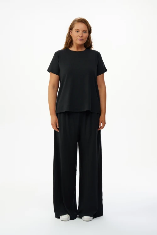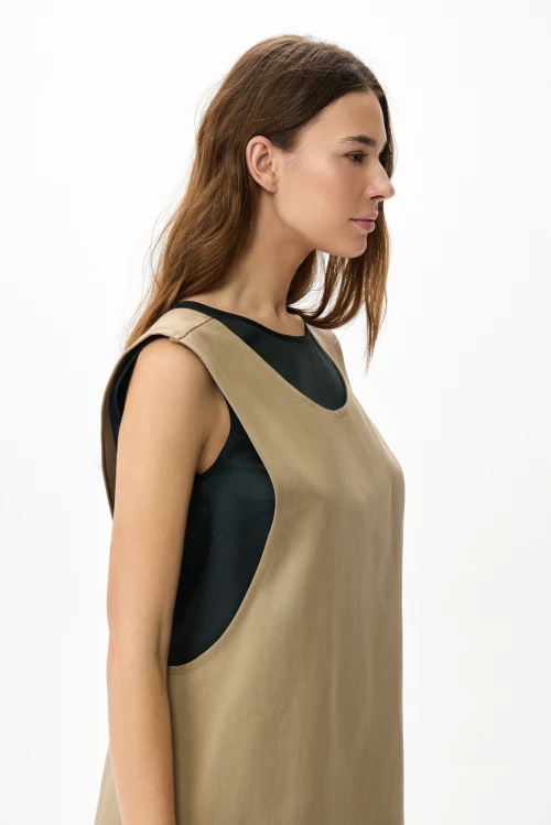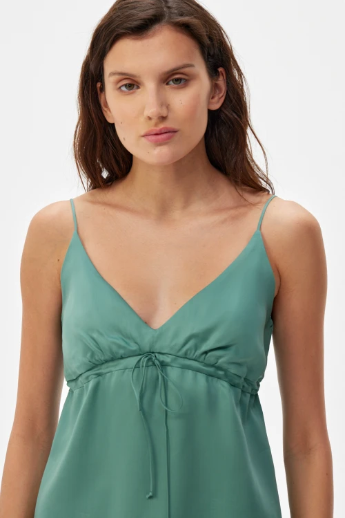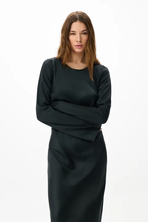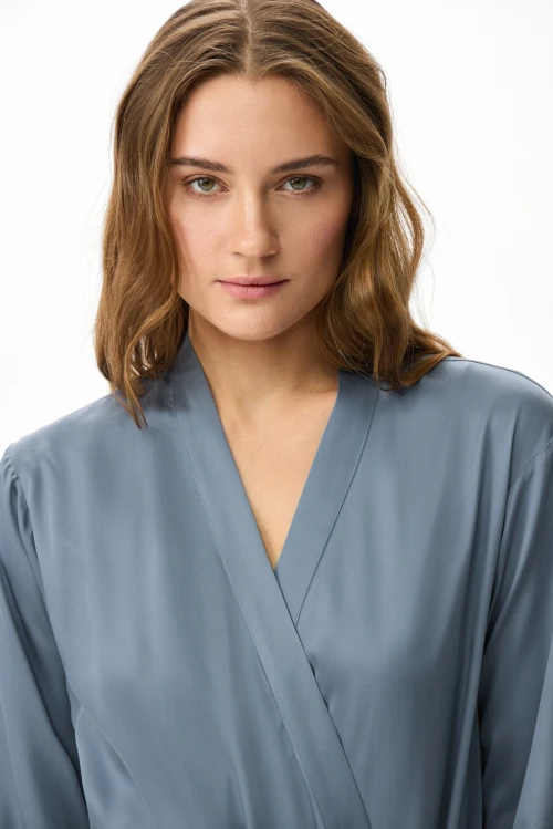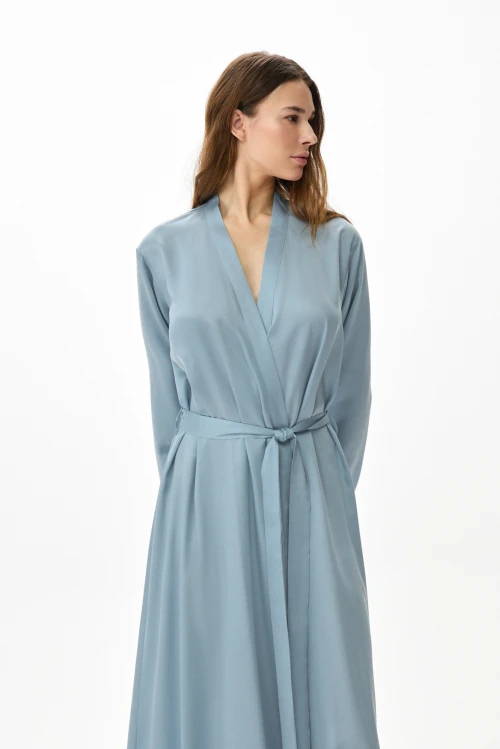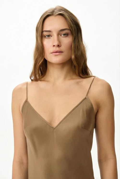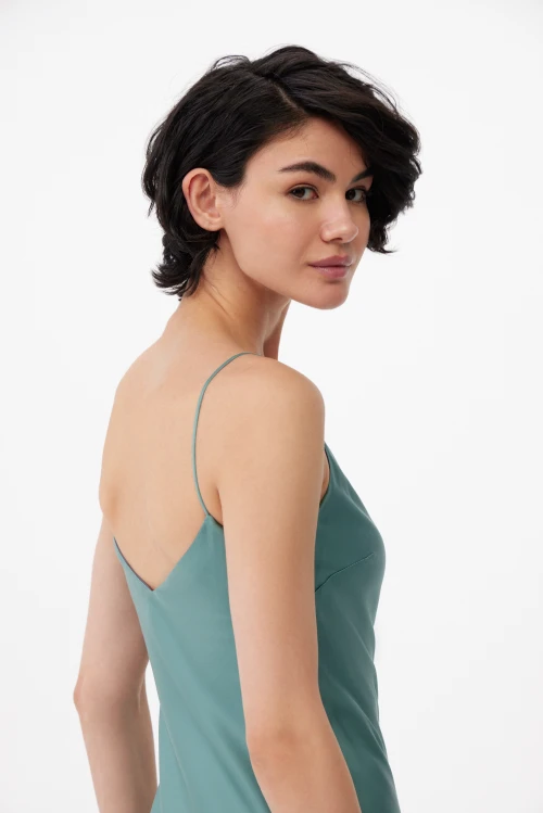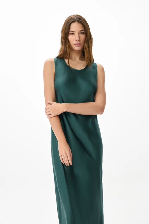 Tencel – экологически чистый материал, на 100% состоящий из древесной массы эвкалиптовых деревьев. Он приятен на ощупь, мягче шелка, впитывает больше влаги, чем хлопок, и прохладнее, чем лен. Замкнутый цикл производственного процесса, где добавляемые органические растворители и вода, перерабатываются и используются повторно на 99,8%, – экологически безопасный и ответственный выбор. Высокая влагопоглощающая способность Tencel сохраняет прохладу и сухость тела, обеспечивая комфорт даже в самые жаркие дни. Волокна переносят влагу в самую сердцевину благодаря сети субмикроскопических каналов, называемых нанофибриллами, сохраняя поверхность ткани сухой. Ткань обладает антимикробными свойствами, не мнется, не выцветает и устойчива к износу. Гладкая, мягкая, приятная на ощупь поверхность волокон не вызывает раздражений, аллергии и подходит для людей с чувствительной кожей. Наша коллекция женской одежды Tencel предлагает универсальность и экологичность. Каждая вещь тщательно разработана для идеальной посадки и создания вневременного стиля. Эта одежда сочетает устойчивость, мягкость и долговечность. Легкая дышащая природа и влагоотводящие свойства ткани Tencel обеспечивают максимальный комфорт, делая ее идеальной для ношения в течение всего дня. Независимо от того, выберете ли вы платье или поло, вы можете быть уверены, что наши изделия Tencel позволят вам чувствовать себя комфортно и уверенно. Обновите свой гардероб и сделайте осознанный выбор в пользу окружающей среды – закажите платье из тенселя в нашем интернет-магазине.