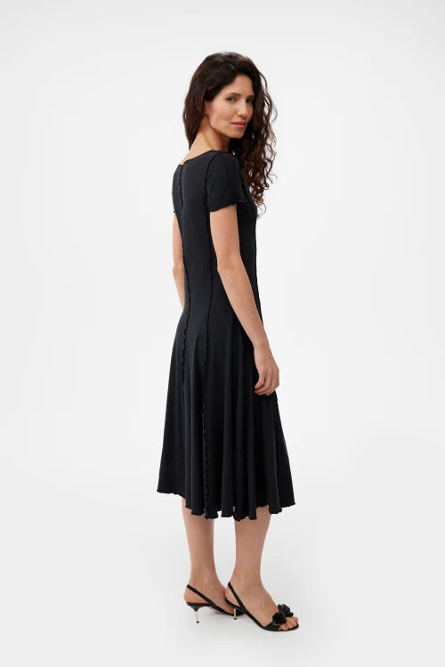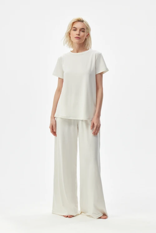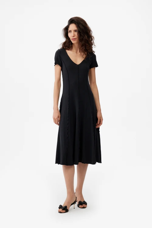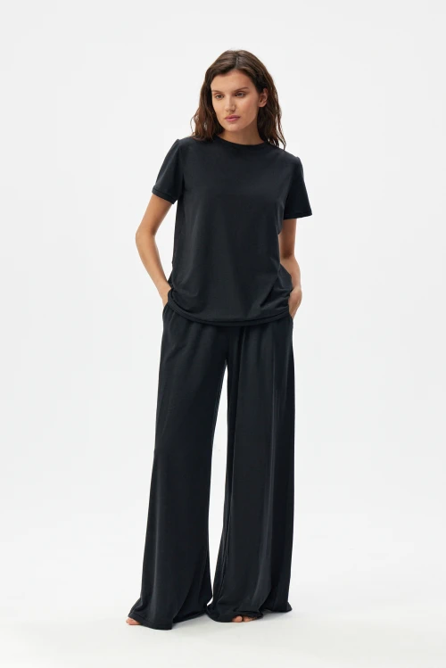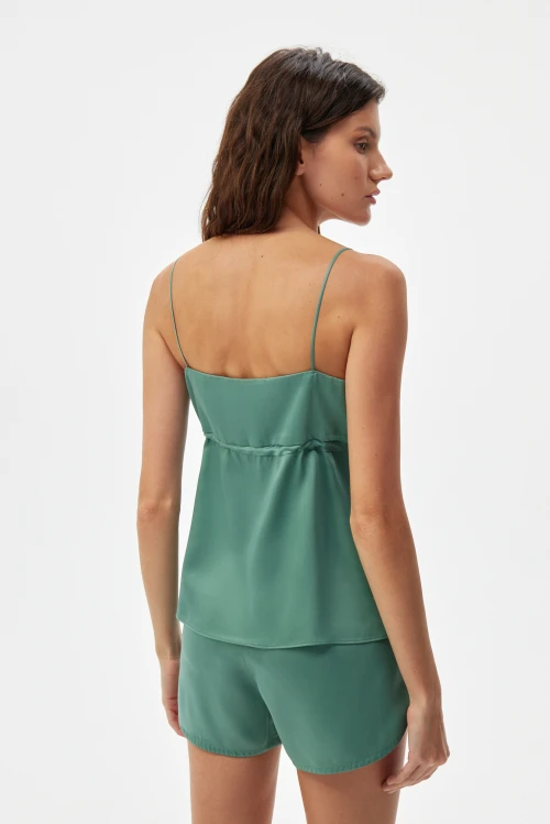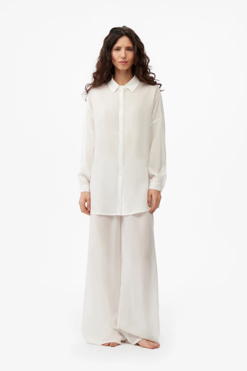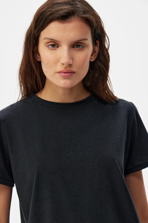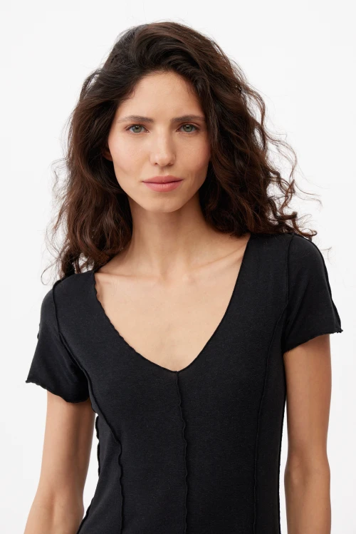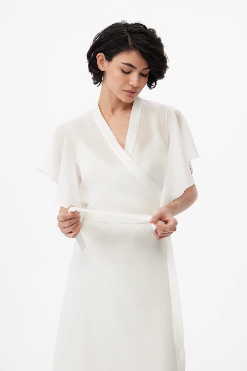 Tencel – экологически чистый материал, на 100% состоящий из древесной массы эвкалиптовых деревьев. Он приятен на ощупь, мягче шелка, впитывает больше влаги, чем хлопок, и прохладнее, чем лен. Замкнутый цикл производственного процесса, где добавляемые органические растворители и вода, перерабатываются и используются повторно на 99,8%, – экологически безопасный и ответственный выбор. Высокая влагопоглощающая способность Tencel сохраняет прохладу и сухость тела, обеспечивая комфорт даже в самые жаркие дни. Волокна переносят влагу в самую сердцевину благодаря сети субмикроскопических каналов, называемых нанофибриллами, сохраняя поверхность ткани сухой. Ткань обладает антимикробными свойствами, не мнется, не выцветает и устойчива к износу. Гладкая, мягкая, приятная на ощупь поверхность волокон не вызывает раздражений, аллергии и подходит для людей с чувствительной кожей. Наша коллекция женской одежды Tencel предлагает универсальность и экологичность. Каждая вещь тщательно разработана для идеальной посадки и создания вневременного стиля. Эта одежда сочетает устойчивость, мягкость и долговечность. Легкая дышащая природа и влагоотводящие свойства ткани Tencel обеспечивают максимальный комфорт, делая ее идеальной для ношения в течение всего дня. Независимо от того, выберете ли вы платье или поло, вы можете быть уверены, что наши изделия Tencel позволят вам чувствовать себя комфортно и уверенно. Обновите свой гардероб и сделайте осознанный выбор в пользу окружающей среды – закажите платье из тенселя в нашем интернет-магазине.